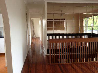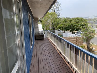 The living area upstairs has polished timber floors, and is open plan design which expands out onto the balcony along front of house.
